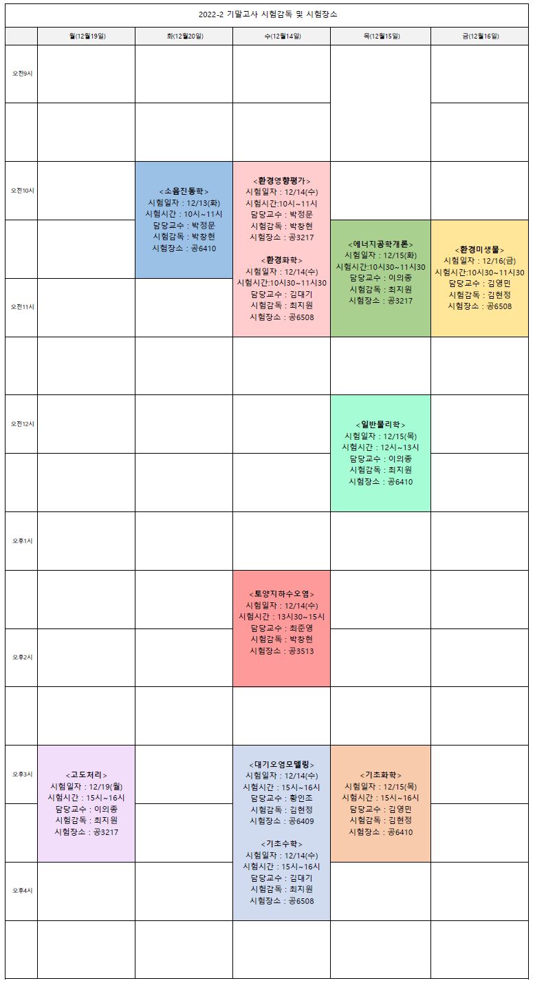2022학년도 2학기 기말고사 시험 일정 및 장소 공지 입니다.