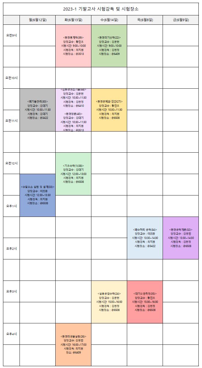 2023학년도 1학기 기말고사 시험 일정 및 장소 공지 입니다.