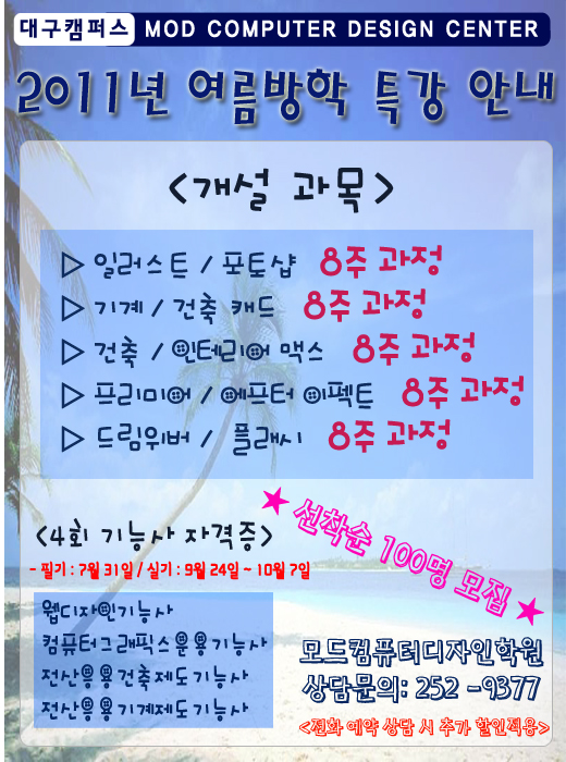 2011년 대구컴퓨터학원 여름방학 특강반 모집중